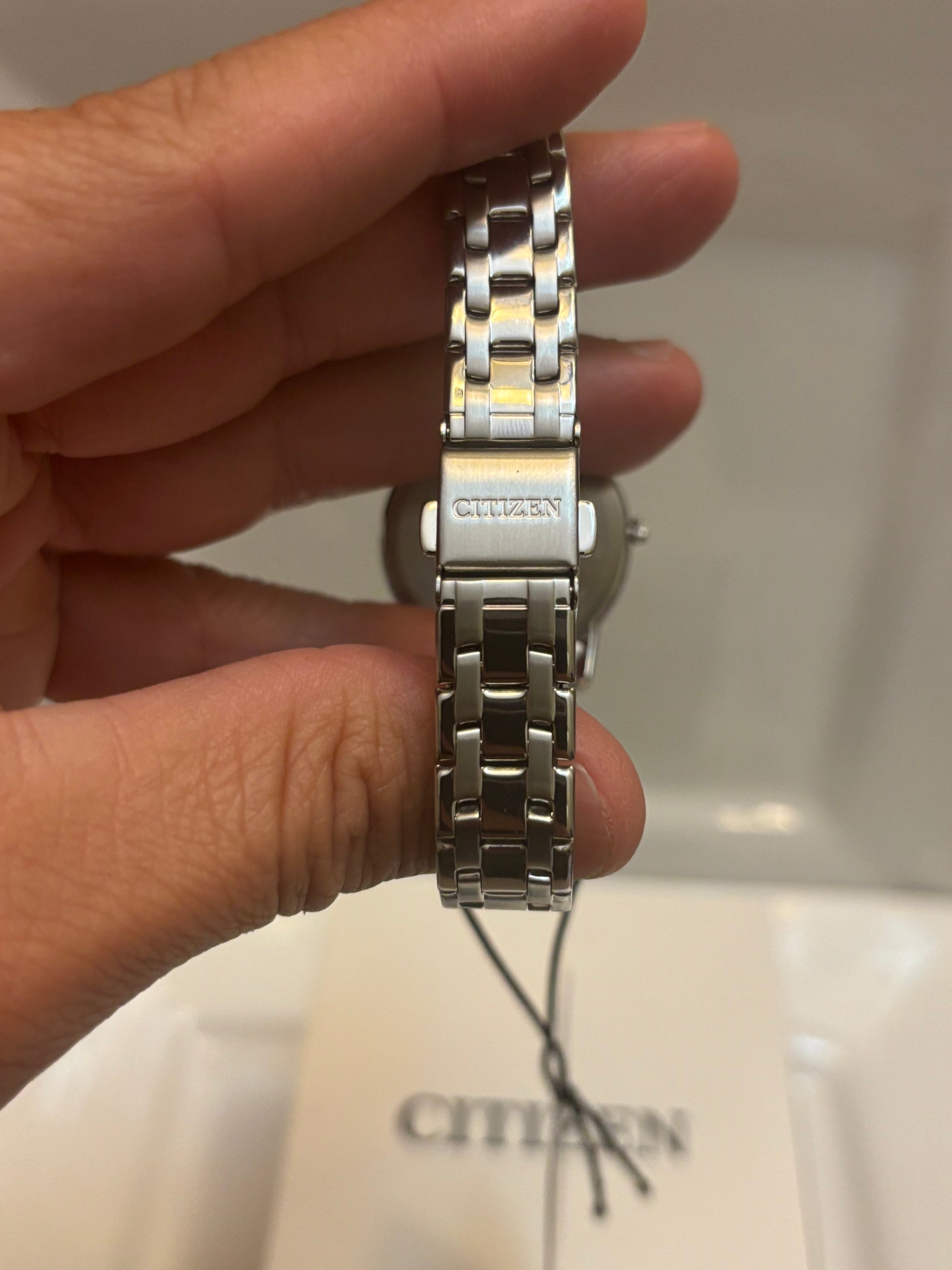 The Citizen FE1240-57L blends timeless style with Eco-Drive innovation. Featuring a 29mm stainless steel case, elegant blue dial with crystal markers, and a bracelet with polished finish, this watch elevates everyday style. Powered by light (no battery changes needed) and water-resistant up to 30m, it’s both practical and refined.
