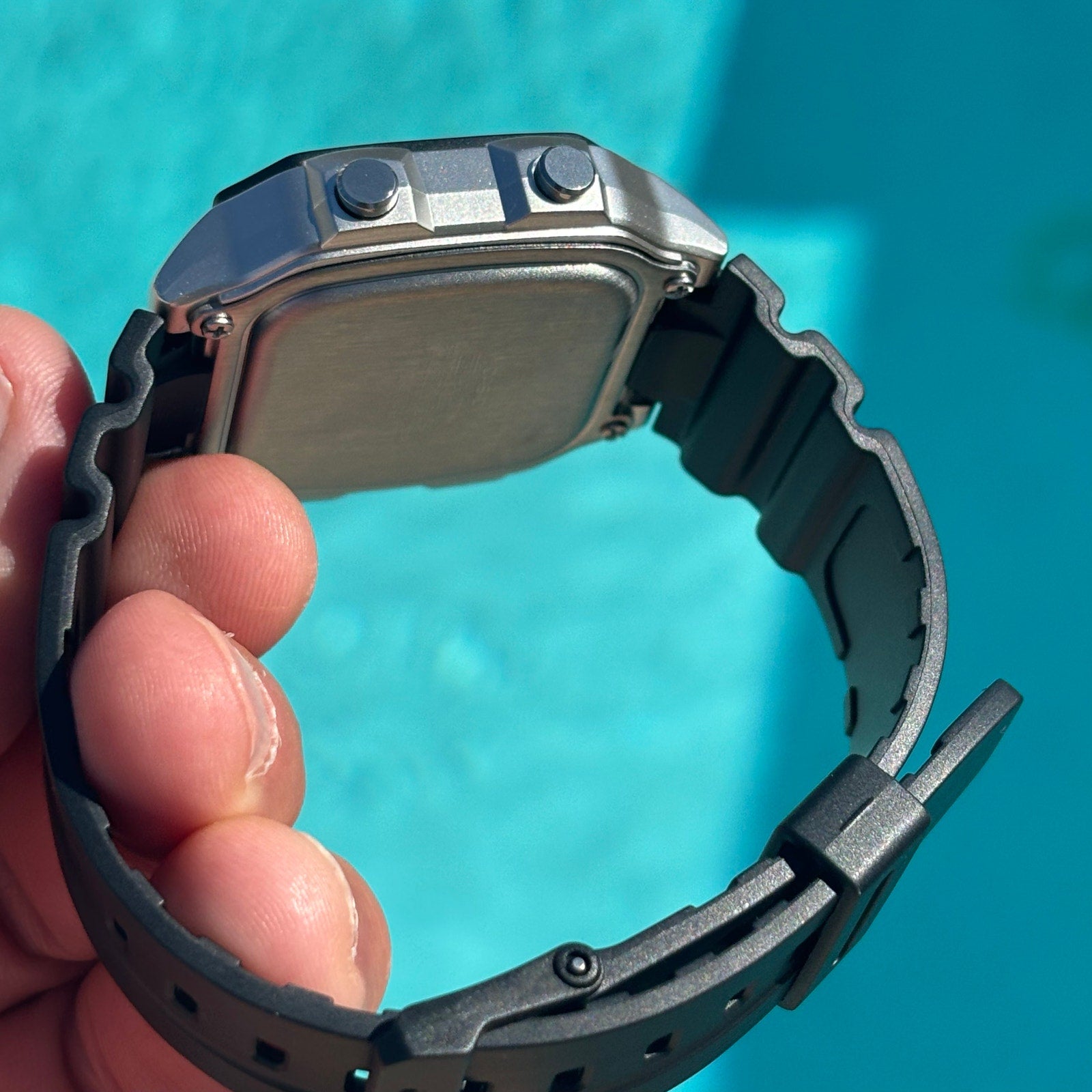 This customed Casio AE1200WH-1CVCF watch Red Nuk Edition features a custom radiant solid emblem and a red gel light filter that enhances the backlight color for a unique look while keeping all original Casio performance features. Designed for travel and everyday wear, it includes world time for 31 time zones, 48 cities, stopwatch, countdown timer, and five daily alarms. The resin band and case offer lightweight durability with 100-meter water resistance. A reliable Casio classic upgraded for both style and function.