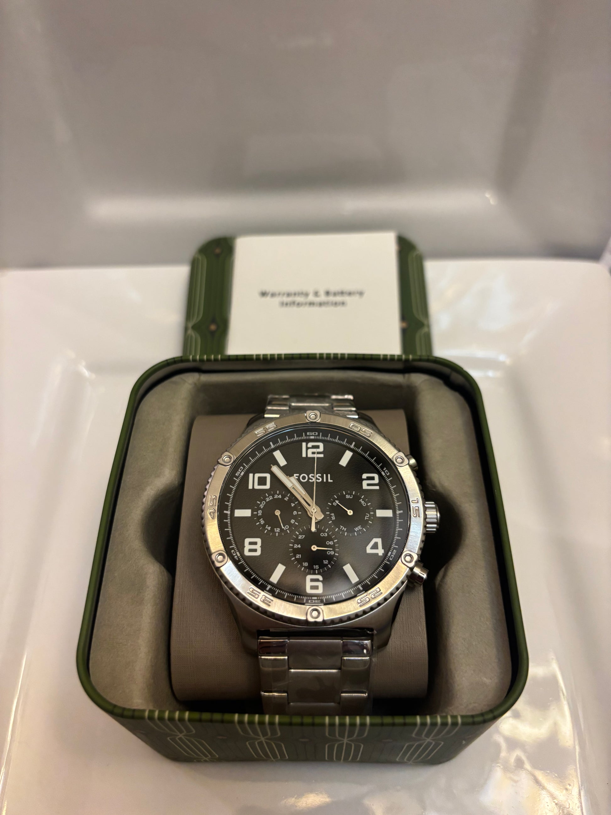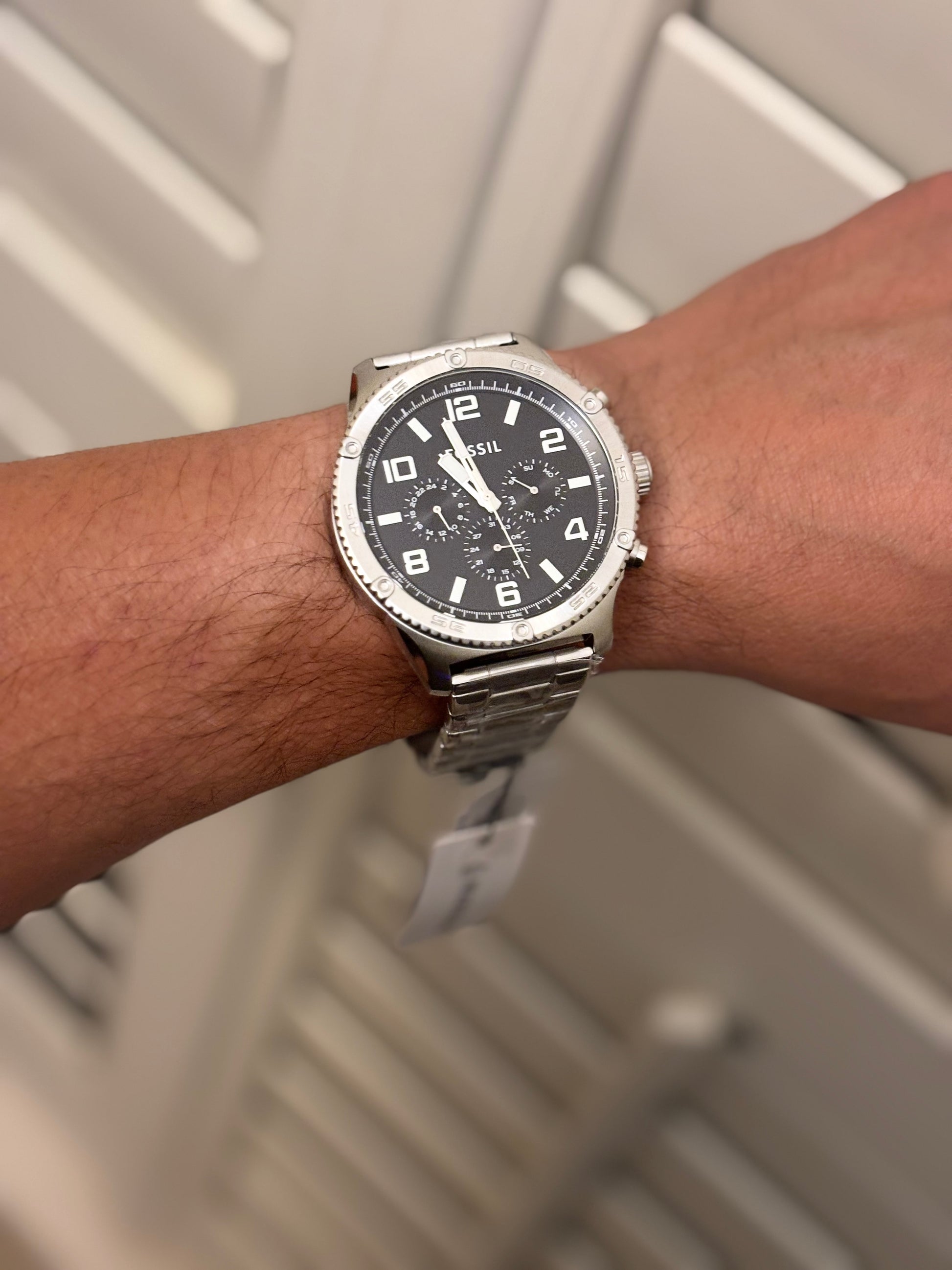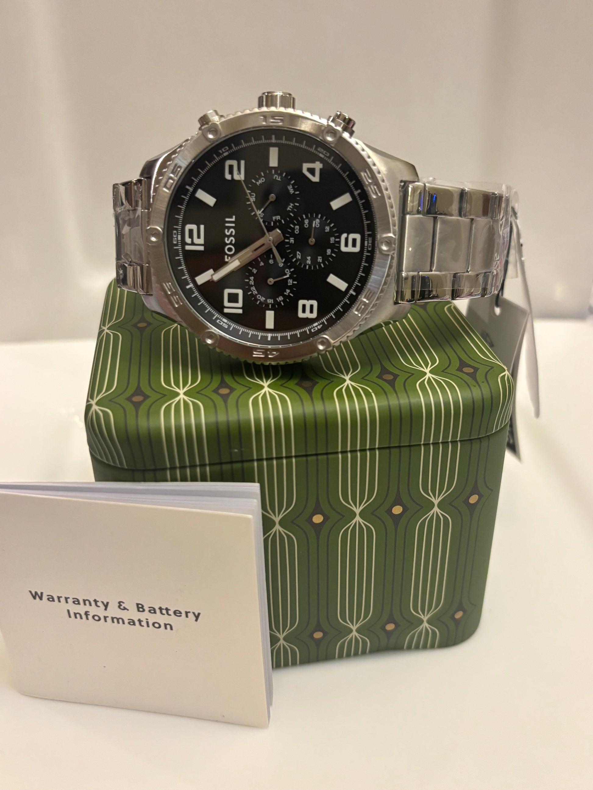 Bold and versatile, the Fossil Brox BQ2797 is built for men who want a watch that makes a statement without sacrificing everyday wearability. Its oversized 50mm stainless steel case, sleek black dial, and multifunction quartz movement deliver both modern design and reliable function.