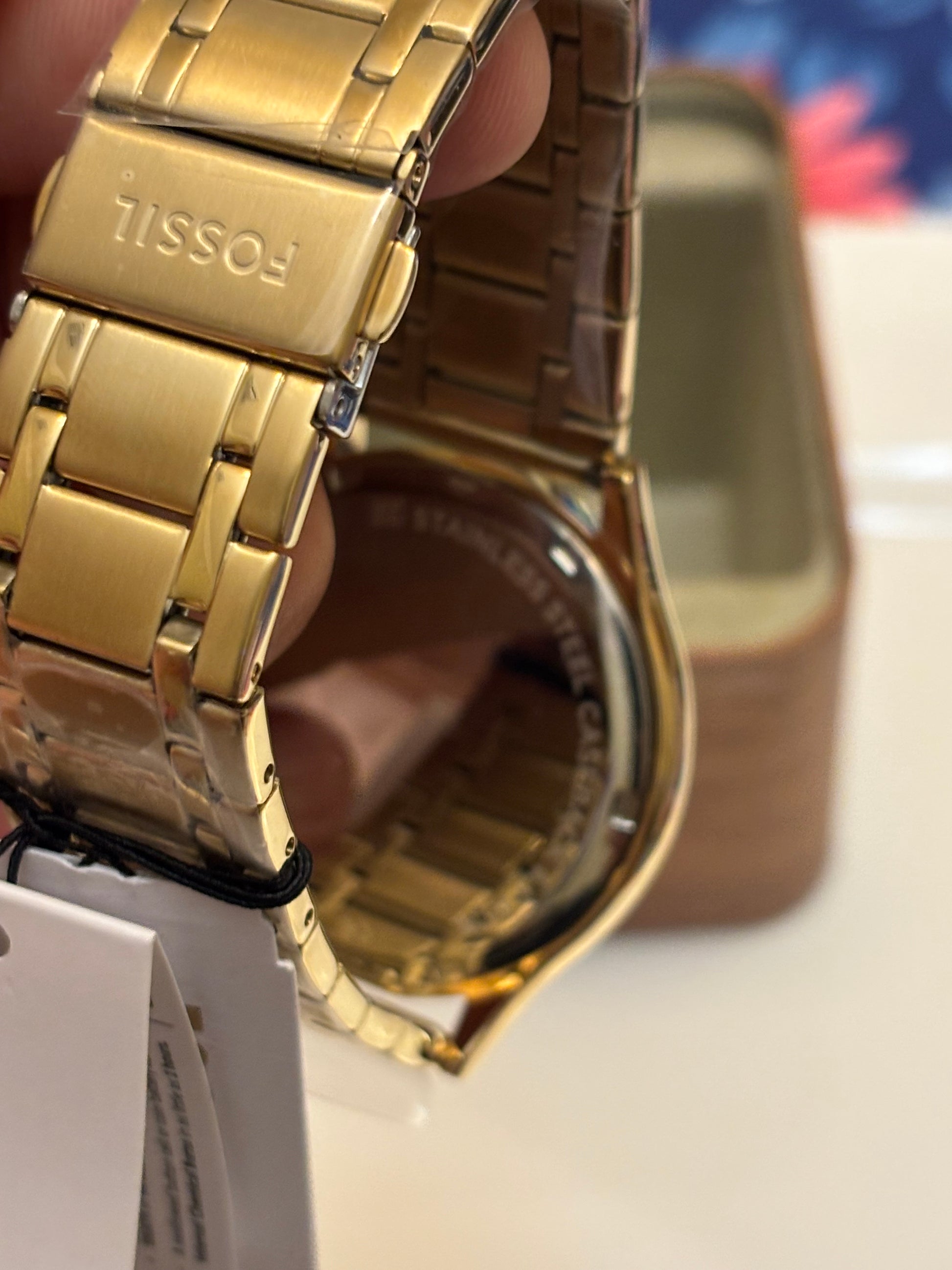 - Bracelet: Gold-tone stainless steel with deployment clasp