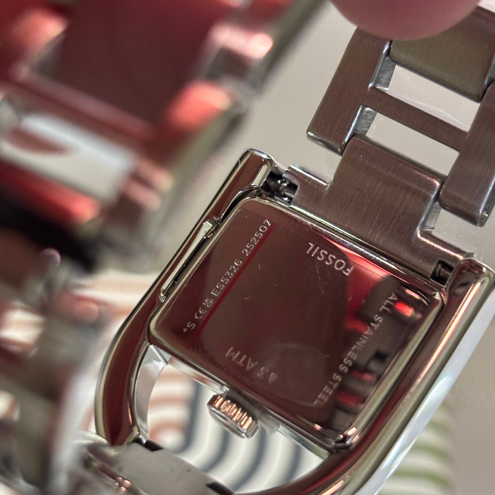 Fossil Harwell ES5326 Womens Quartz Watch 28mm Rectangular Stainless Steel Bracelet Silver Dial 3ATM Water Resistant