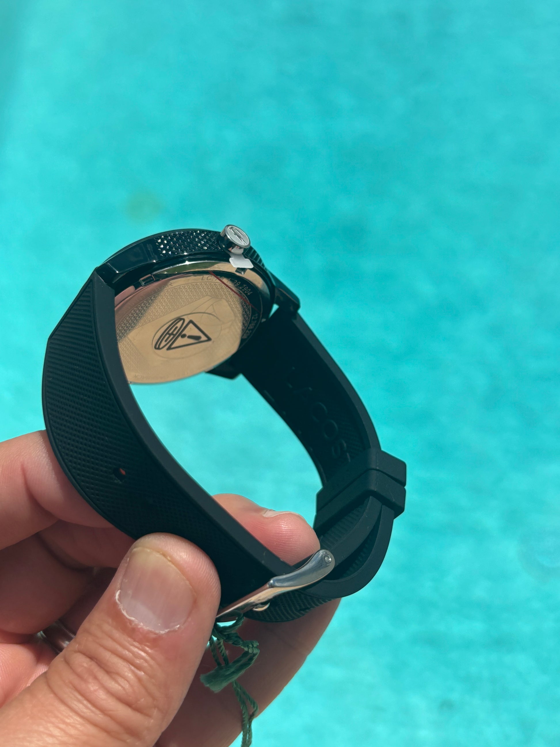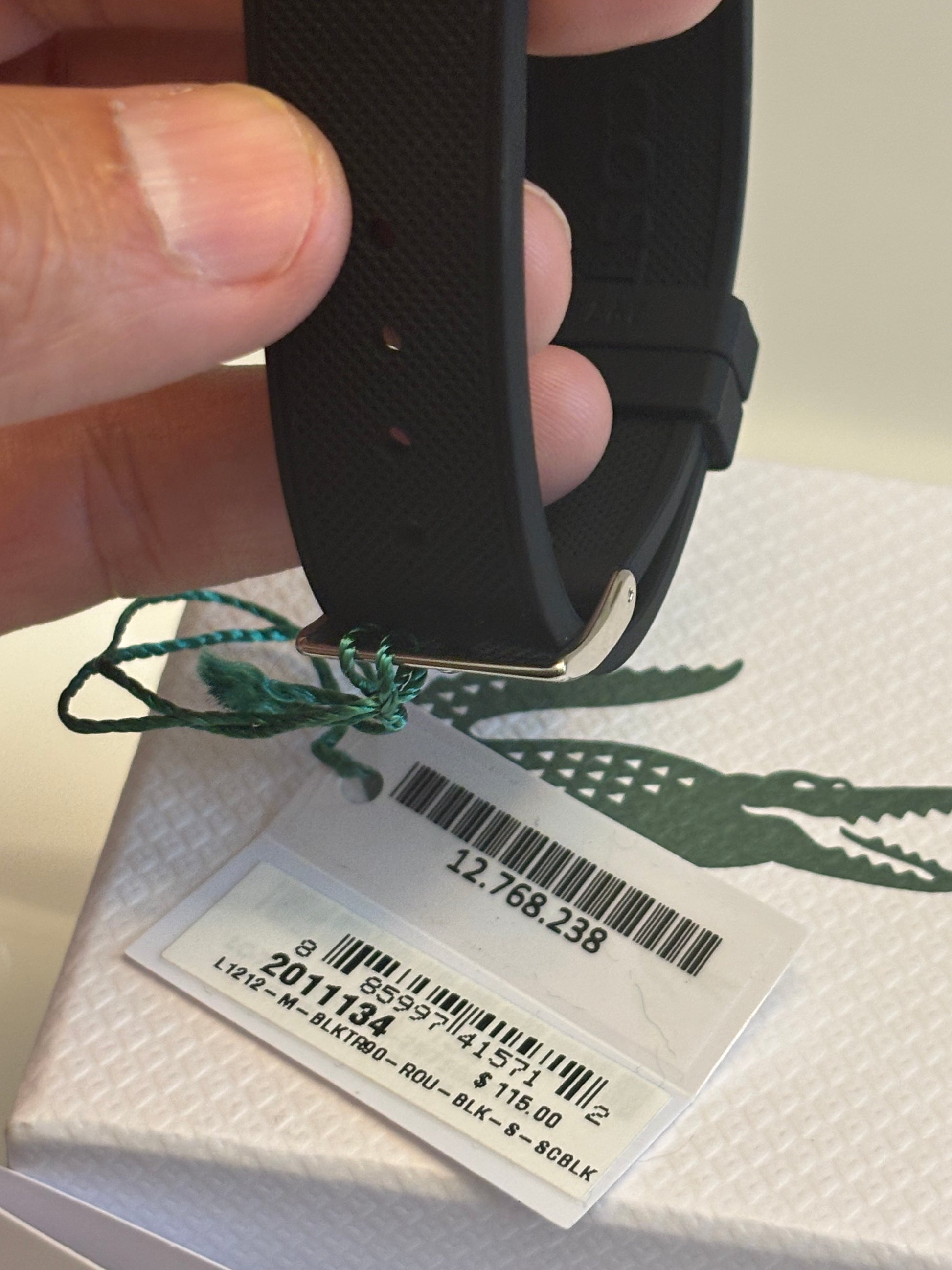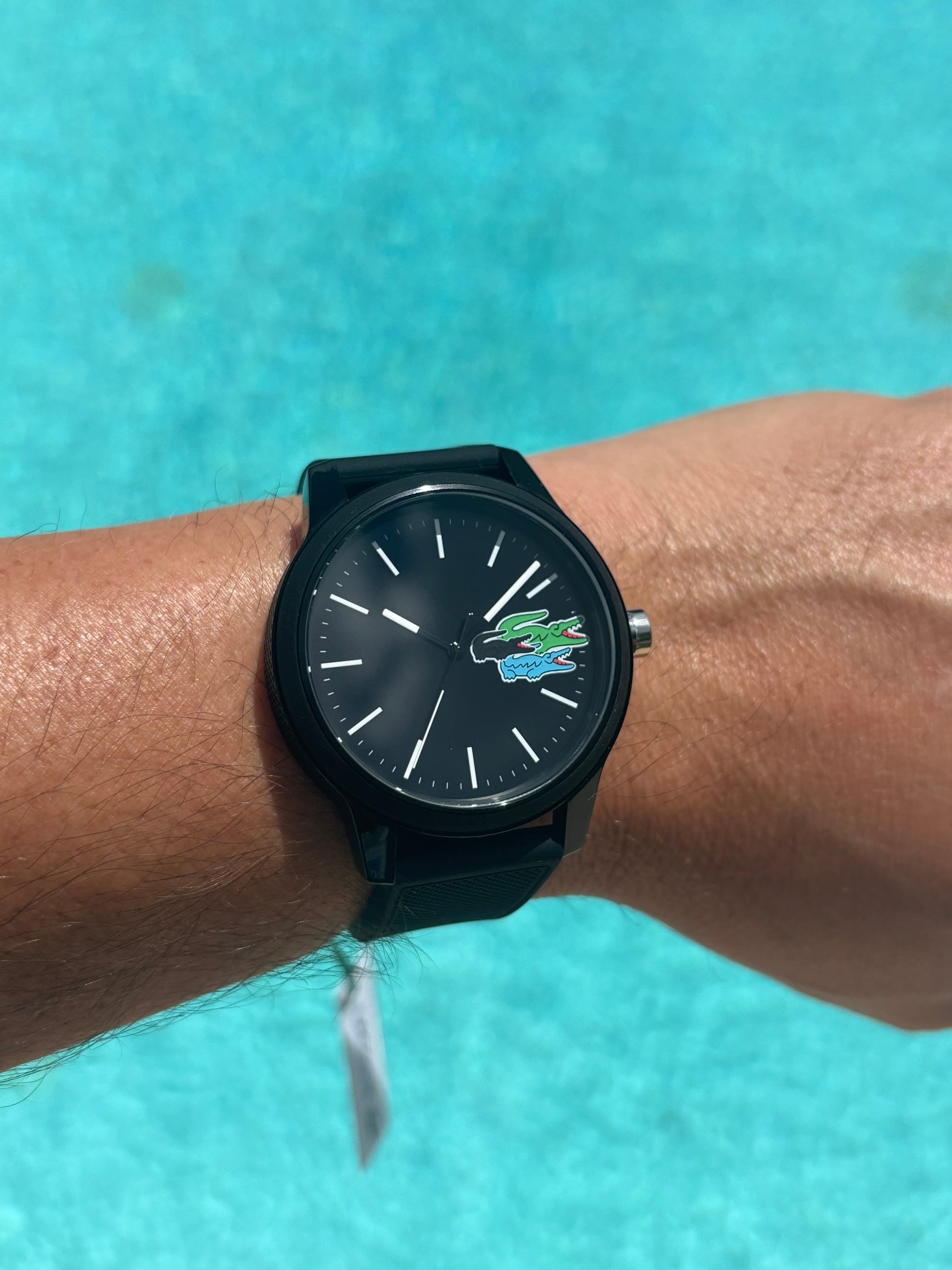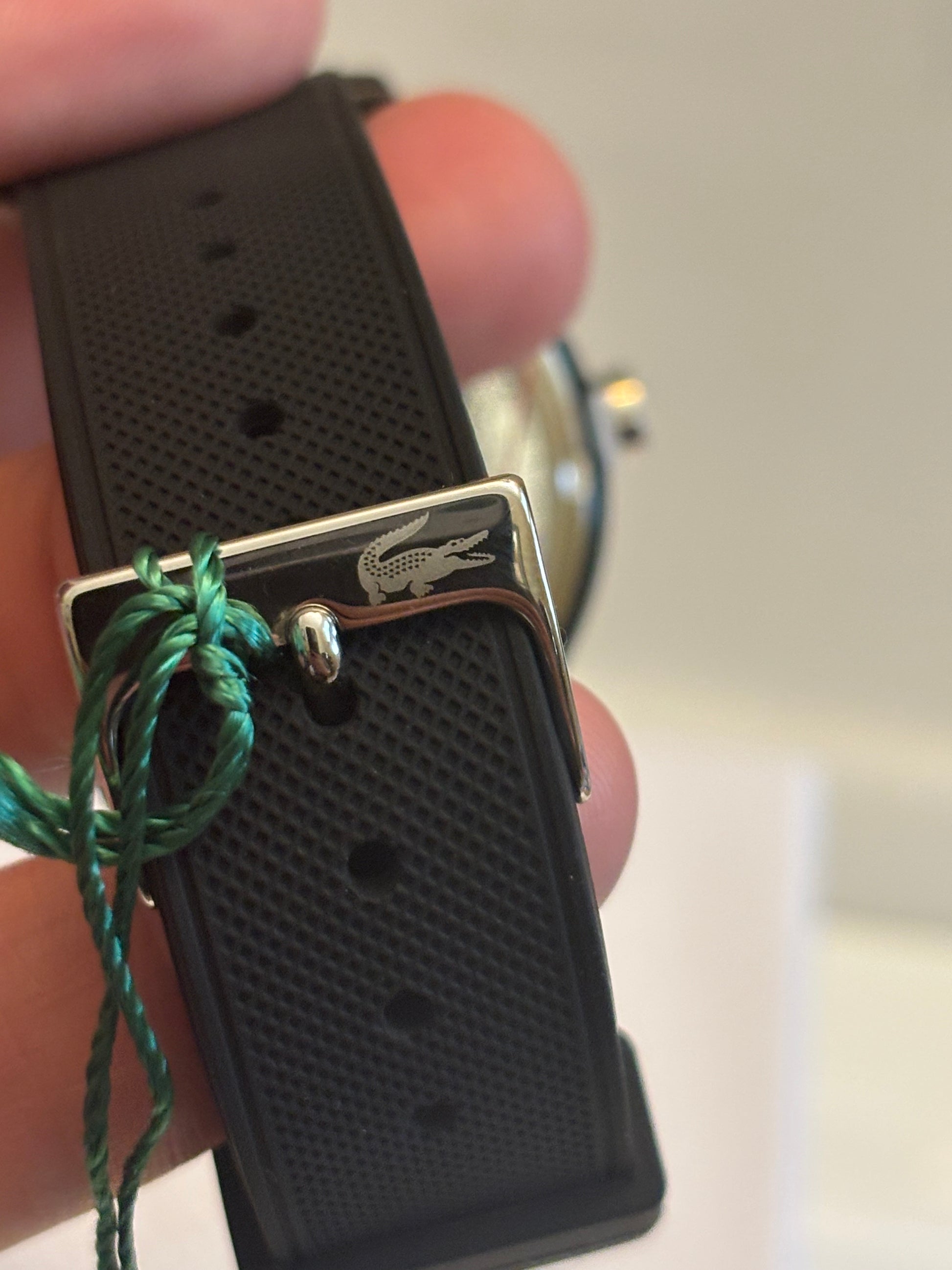 Specs: Model 2011134 • 3-hand quartz • 42 mm case • 5 ATM • buckle closure • new with tags + Lacoste box